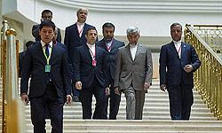 علی باقری معاون سیاست خارجی و امنیت بینالملل دبیر شورای عالی امنیت ملی، سید عباس عراقچی معاون آسیا و اقیانوسیه وزارت امور خارجه، حمیدرضا عسگری مشاور وزیر امور خارجه و رسول موحدیان سفیر سابق ایران در لندن در ترکیب هیئت ایرانی همراه جلیلی حضور دارند.