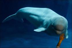 این نهنگ در بین دلفین ها و دیگر نهنگ های سفید و اغلب در حضور انسان زندگی می کرد.
