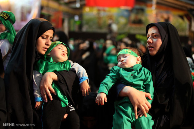 گهواره خالی اصغر (ع) آتشی را بر دل مادران انداخته که اینگونه بی تابی می کنند، اشک ها از گونه ها سرازیر است، بغض ها می شکند و صدای گریه کودکان در آغوش مادرانشان در فضا پیچیده است.