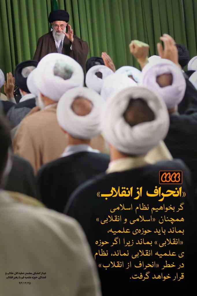 ایشان با تأکید بر اینکه باید از هرگونه تلاشی برای «انقلابزدایی» از حوزههای علمیه احساس خطر کرد، افزودند: باید با فکر و تدبیر و برنامهریزی حکمتآمیز، با این خطر مقابله کرد تا حوزهی علمیهی قم همواره یک حوزهی انقلابی و مهد انقلاب باقی بماند و بینش و حرکت انقلابی در آن توسعه یابد.