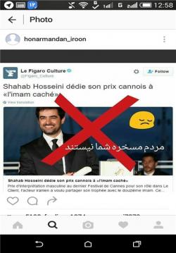 پس از دریافت نخل طلای کن توسط شهاب حسینی بازیگر سینما و تلویزیون ایران، این هنرمند متعهد در نشست خبری فیلم فروشنده این جایزه را به ساحت مقدس امام زمان(عج) تقدیم کرد.