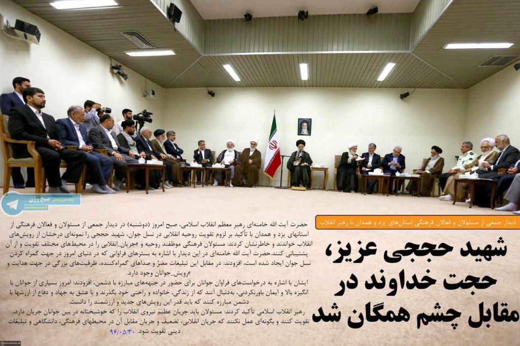 رهبر انقلاب اسلامی، شهید حججی را نمونهای درخشان از رویشهای اسلامی و انقلابی خواندند و گفتند: شهید حججیِ عزیز در دنیایی که روزنههای اغواگر صوتی و تصویری فراوانی وجود دارد، چنین درخشید و خداوند او را همچون حجتی در مقابل چشم همگان قرار داد.