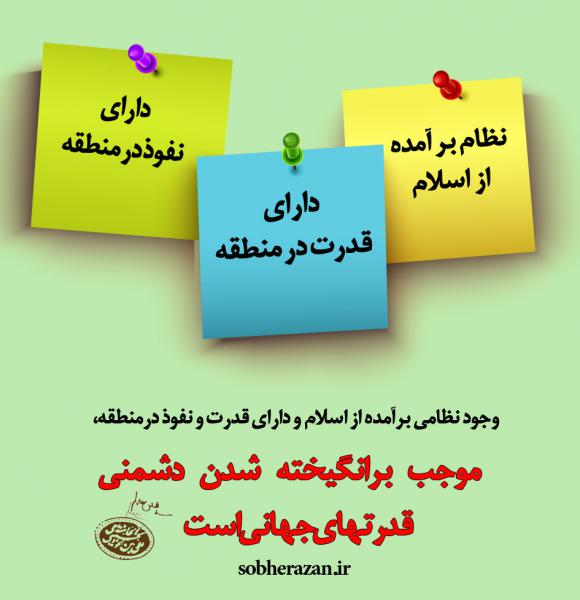 وجود نظامی برآمده از اسلام و دارای قدرت و نفوذ درمنطقه، موجب برانگیخته شدن دشمنی قدرتهای جهانی است.