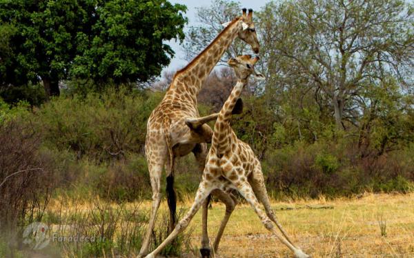 عکاس آلمانی حیات وحش تصاویر خارق العاده ای از نبرد دو زرافه در پارک ملی بوتسوانا برداشته است.