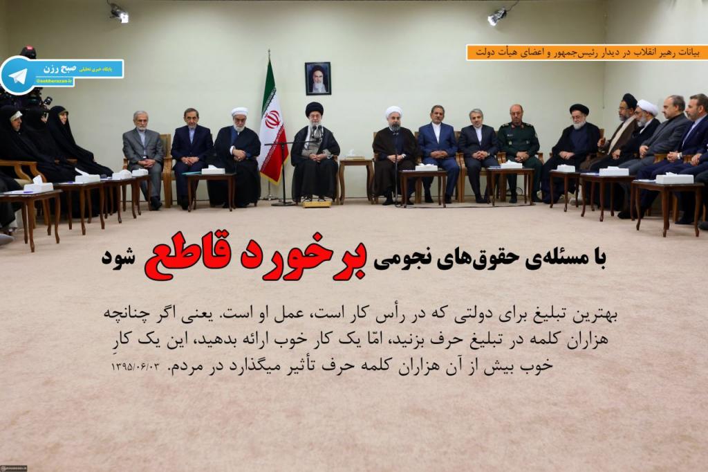 مرور سخنان رهبری در این زمینه به نظر اینک حیاتی می رسد ،تا مردم بدانند میان خواست رهبری انقلاب و عملکرد مسئولین چه تفاوت فاحشی وجود دارد.